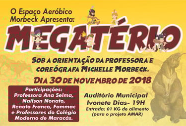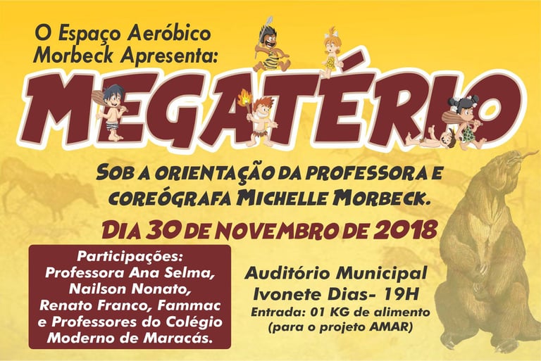 A primeira expressão artística da humanidade foi a dança. Por isso, visitamos o período pré-histórico, escolhendo como nome, o mamífero Megatério (uma preguiça gigante) cujo o nome significa "grande fera" para mostrar ao público como a humanidade foi fera ao descobrir o fogo, produzir suas primeiras ferramentas de pedras, a invenção da roda, entre outros.