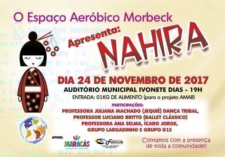 O Espetáculo Linha do tempo é uma celebração aos 15 anos de produção cultural do Espaço Aeróbico Morbeck à comunidade de Maracás. Um intercâmbio entre as linguagens artísticas e parcerias com profissionais da cidade.